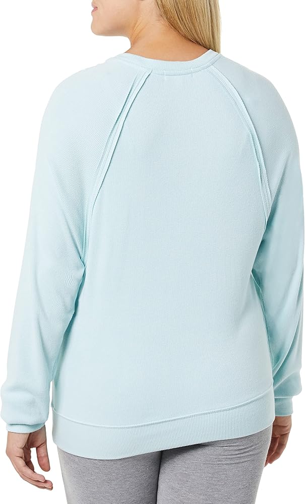 Pale seafoam long sleeve top in 2x1 slinky rib. Inside-out raglan seams & banded hem.