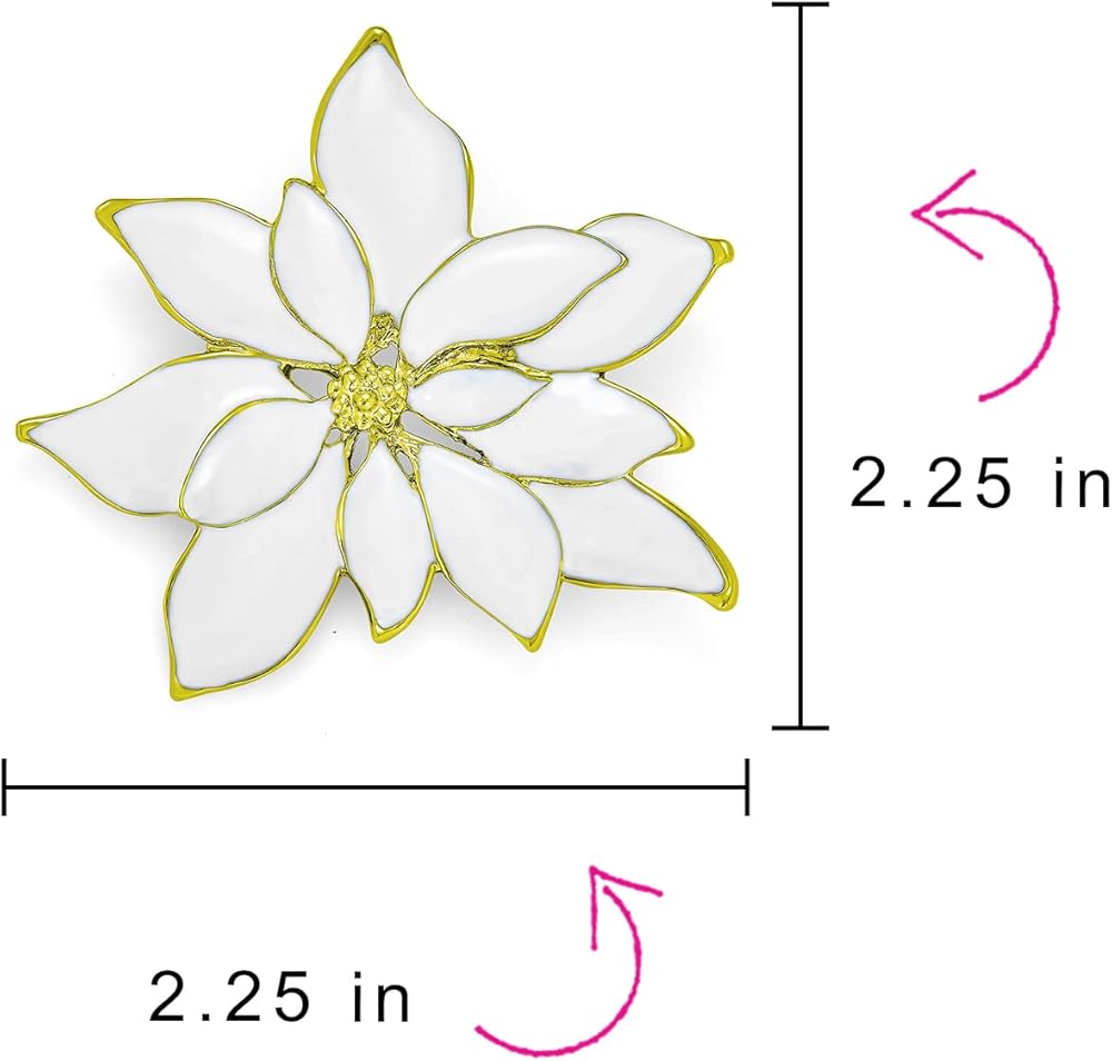 This winter flower is designed to withstand the test of time, ensuring long-lasting use. Perfect for individuals with non-pierced ears, it features a convenient clip-on design. This versatile piece is the perfect holiday accessory and makes an ideal stocking stuffer.