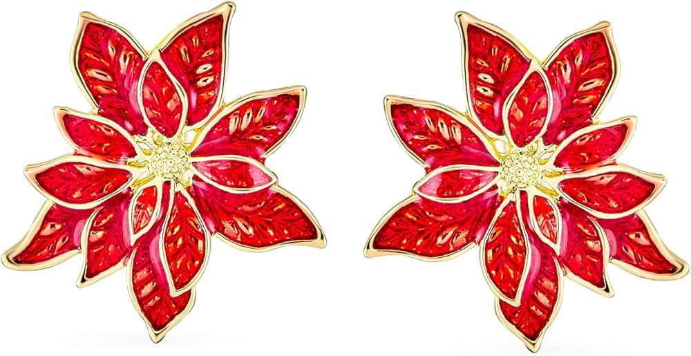 STUNNING DESIGN - Dazzle this Christmas with these gold plated, floral clip-on earrings for non-pierced ears. Add fresh and feminine flair to any look and celebrate the holiday season in style with a blooming red enamel poinsettia flower as the center stage.