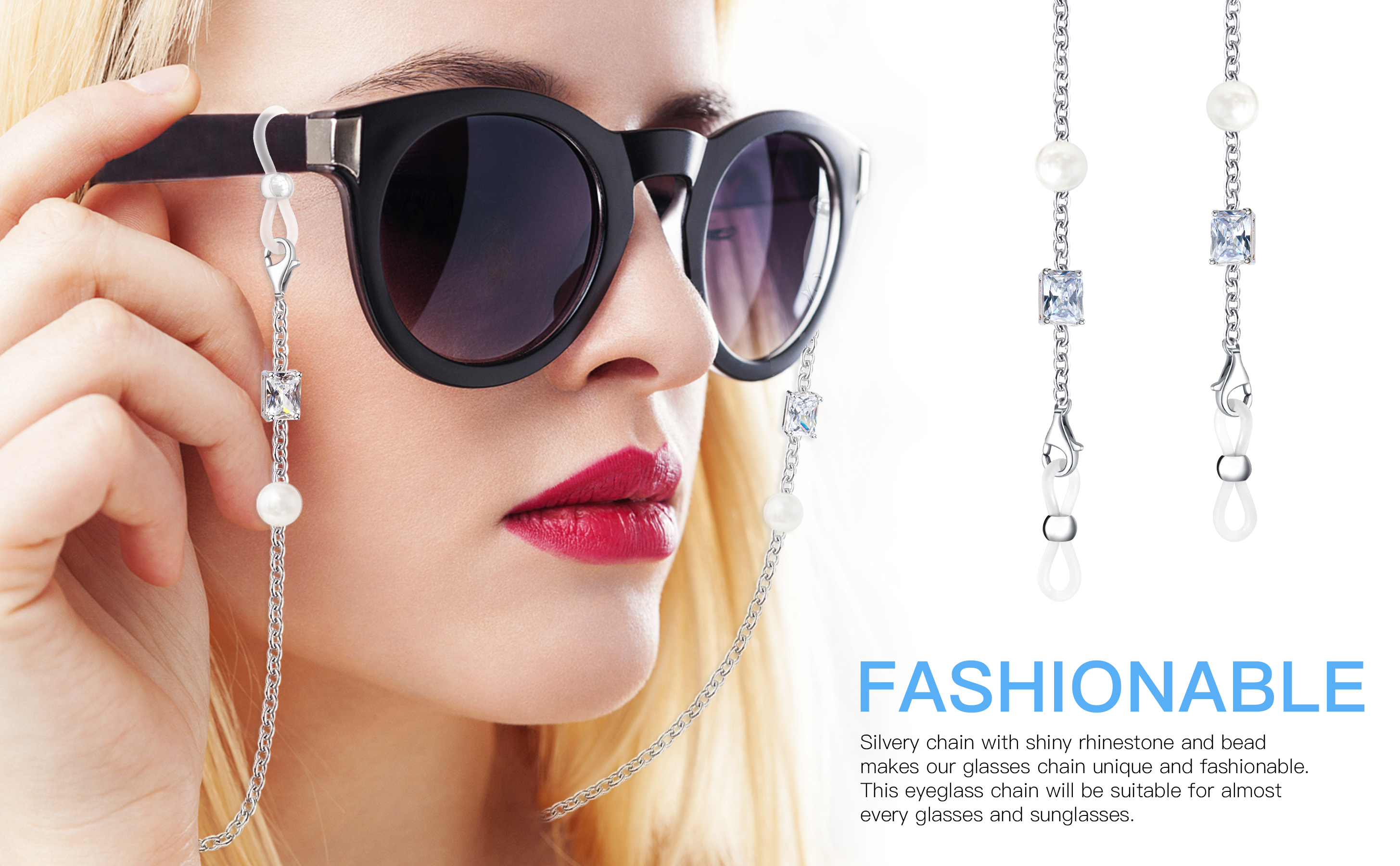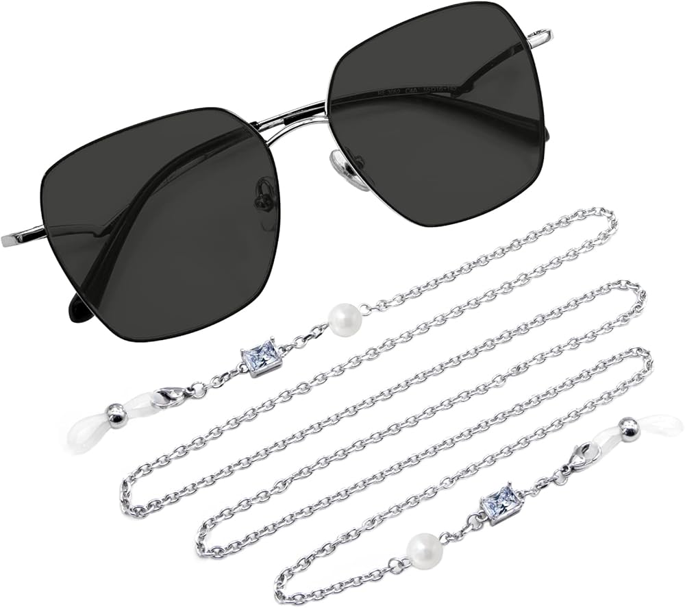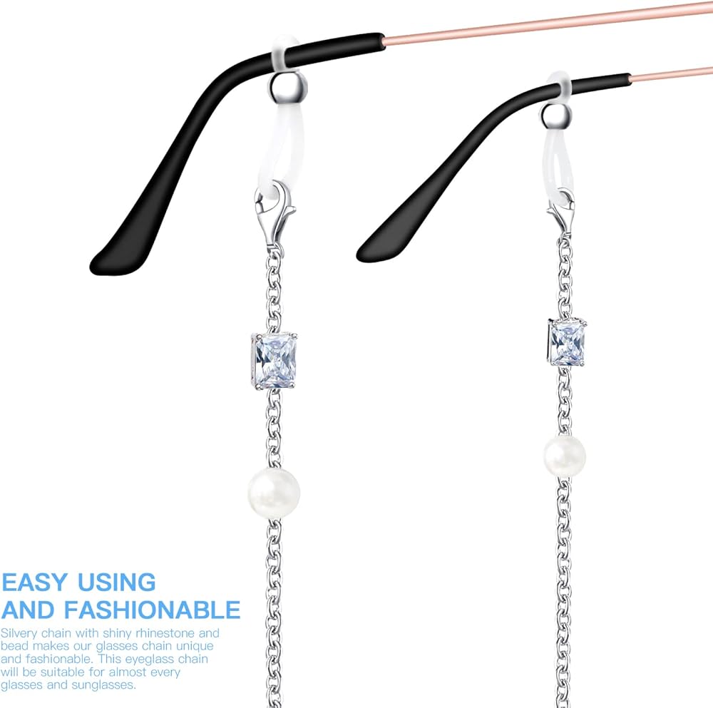 [Easy Using and Fashionable] The sunglasses strap is entirely silvery with shiny rhinestone and bend, simple and elegant, which makes your boring glasses to be unique. This glasses strap will be suitable for almost every glasses and sunglasses.