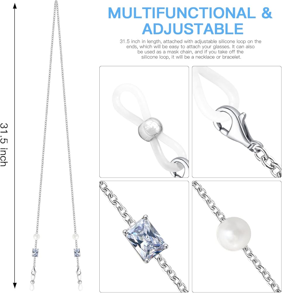 [Multifunctional & Adjustable] 31.5 inch in length, attached with adjustable silicone loop on the ends, which will be easy to attach your glasses. Our glasses holder can also be used as a mask holder, and if you take off the silicone loop, it will be a necklace or bracelet.