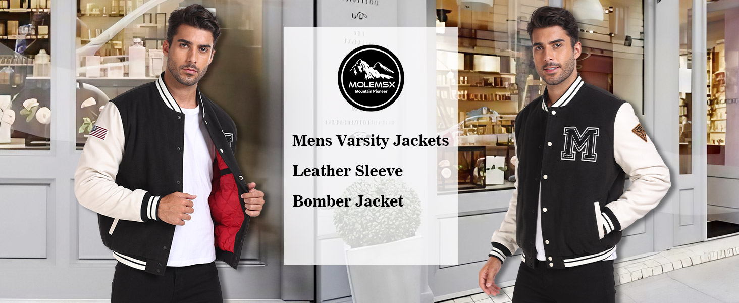 Molemsx Mens Fashion Padded Varsity College Baseball Varsity Coat Causal Bomber Jacket