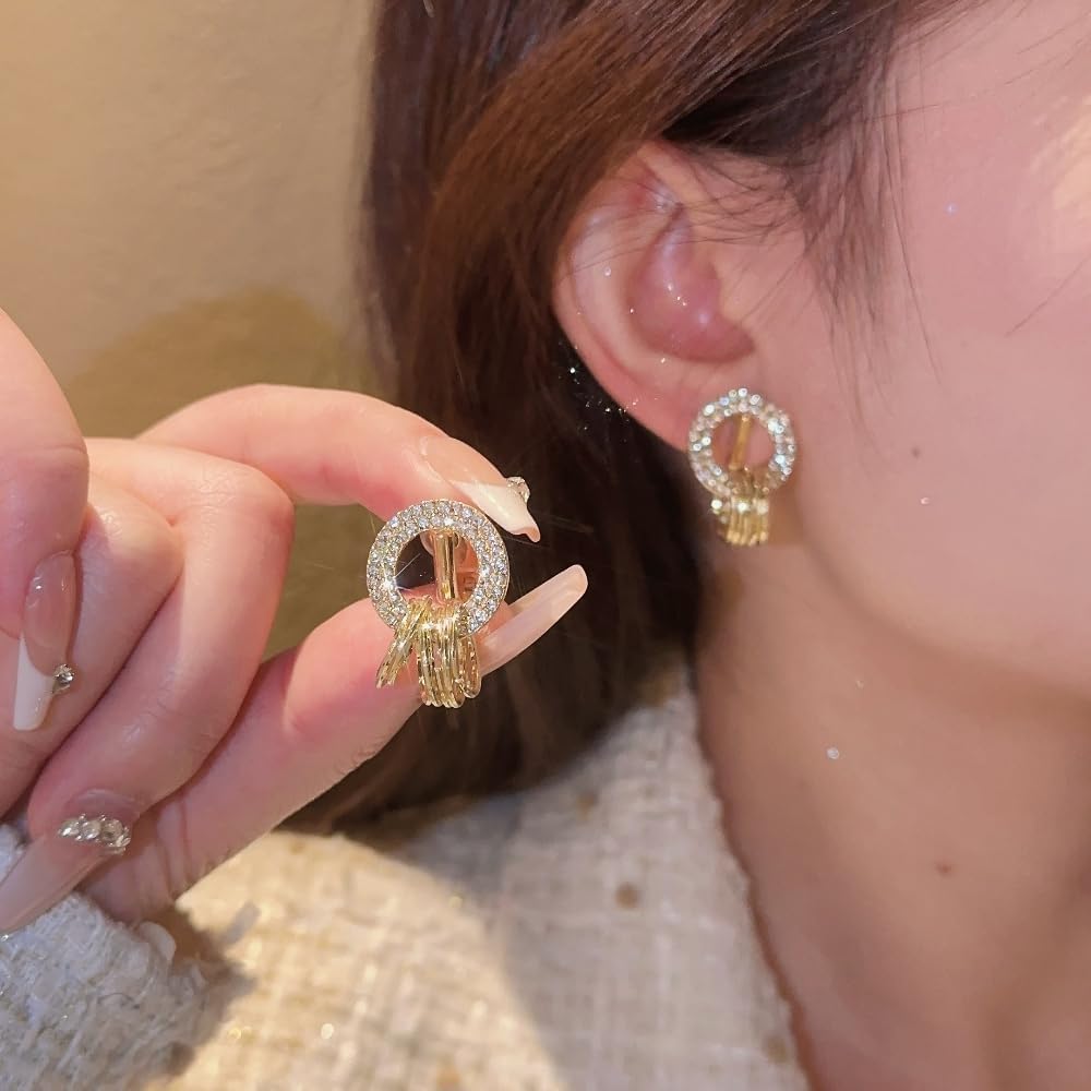 High Quality Material&Unique Design:In Size Of 0.94inch*0.66inch,Gold Color,and These Ear Clips are Made of High Quality Alloy,Fastness ,Decorated With Superior Zircons,Which Shine Brighter.These Earrings Clip On are Designed in Hoop Shapes,The Larger One is Fully-Drilled by Zircons Together with Several Small Gold Hoops,Make it More Elegant and Classic in Daily Wear.