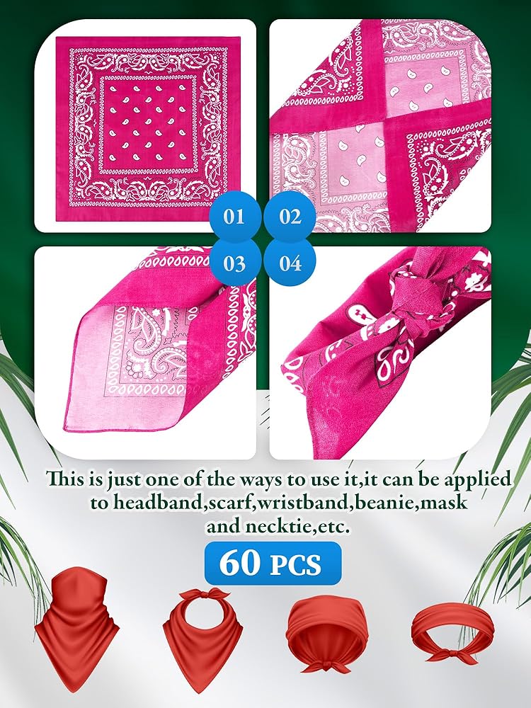 Each large bandana scarf has a proper size for versatile usage. You can wear it around your neck, use it as a headband, a pocket square, or even as a scarf. Its dimension ensures that it can be relied upon for multiple needs.