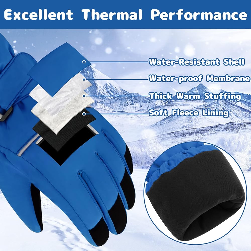 SUITABLE OCCASIONS: The kids gloves winter waterproof are nice thermal accessories for kids in winter and especially suitable for outdoor winter activities & sports, such as skiing, snowboarding, playing with snow, ice skating, etc. In addition, these kids snow gloves are also great gifts for kids in Birthday, Christmas and New Year or other special days.