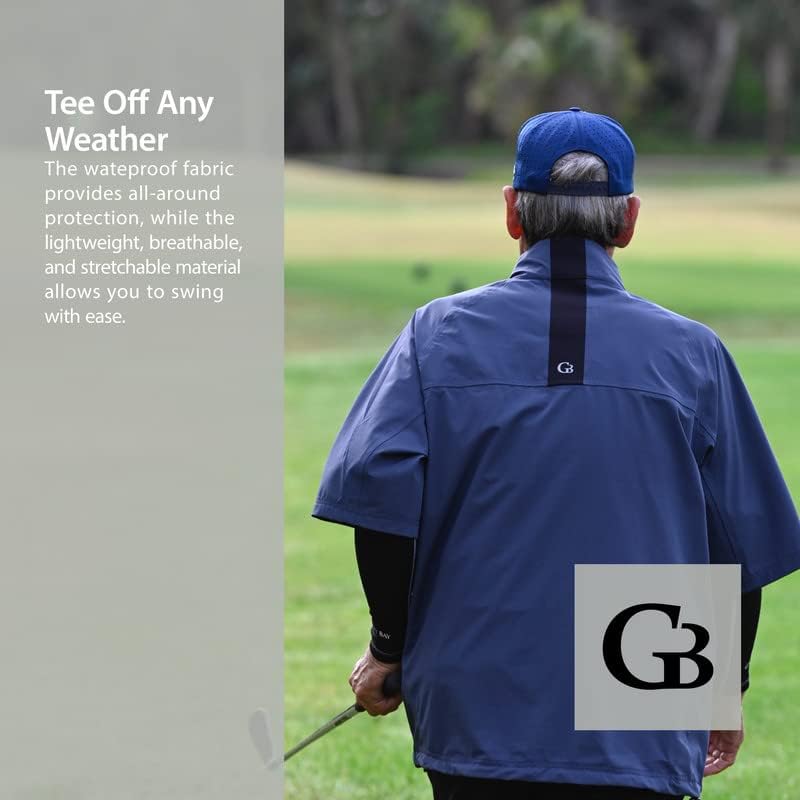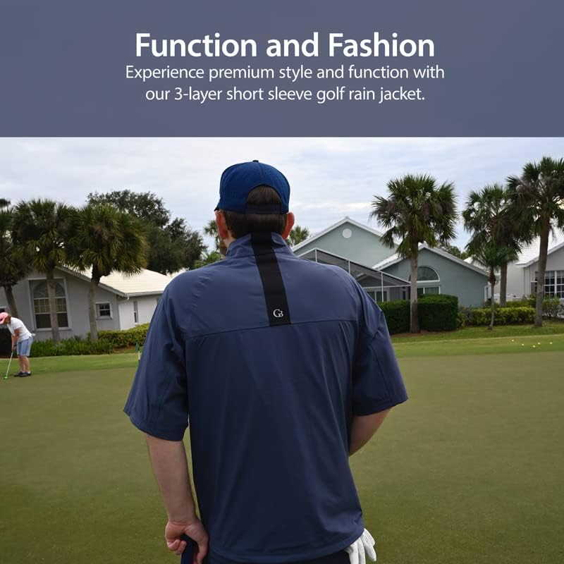 Short Sleeve Golf Rain Jacket - Three Layer Short Sleeve Lightweight, Breathable, All Weather Jacket for Men