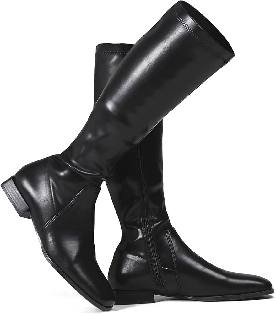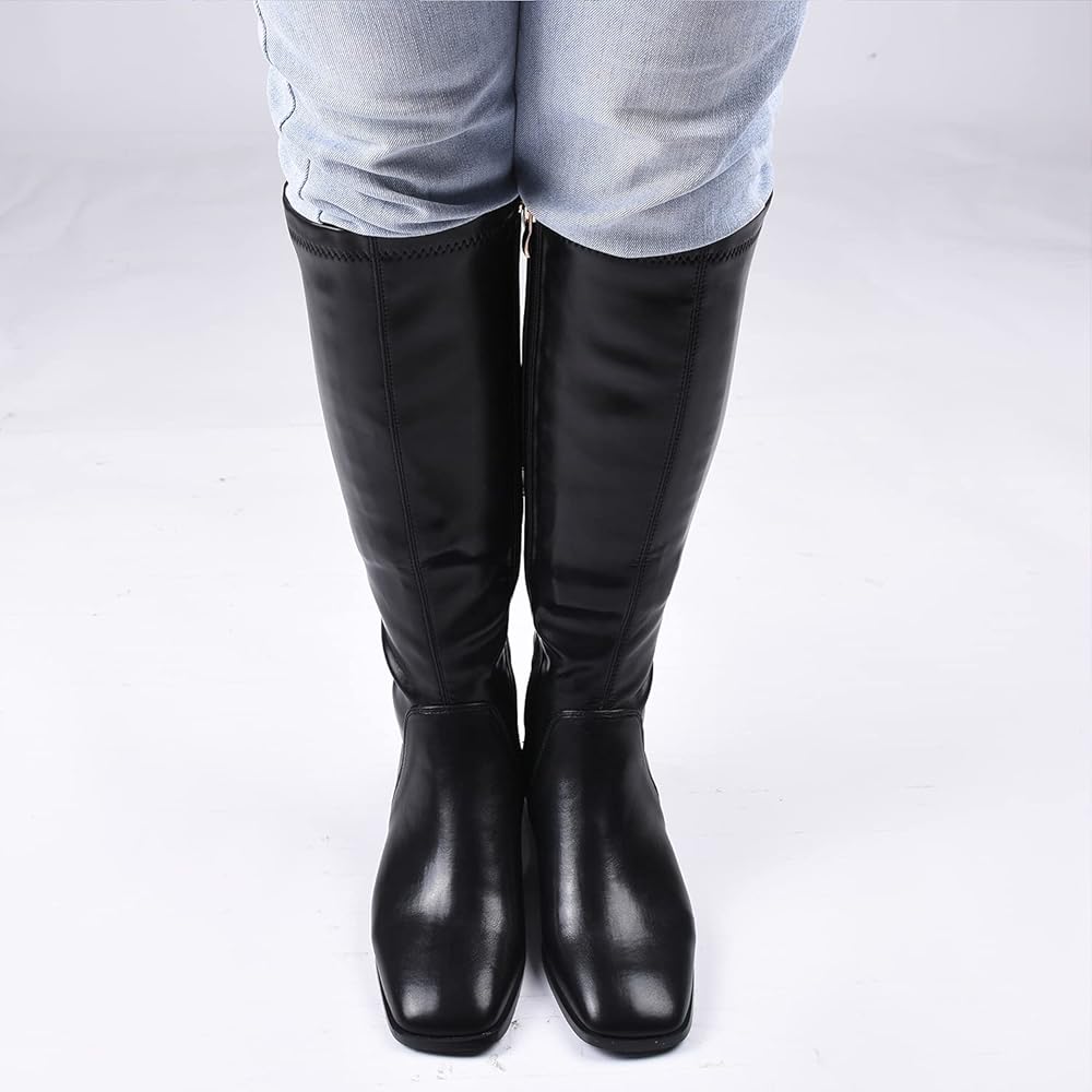 👢🎁 Knee-High Boots: These high boots have White/ Black/Red/ Brown/Nude available, featuring square toe, Low designer heel, side zipper for easy switching, comfortable calf high knee boots.