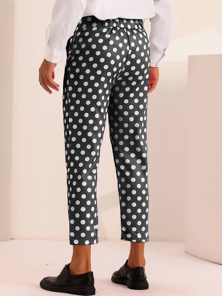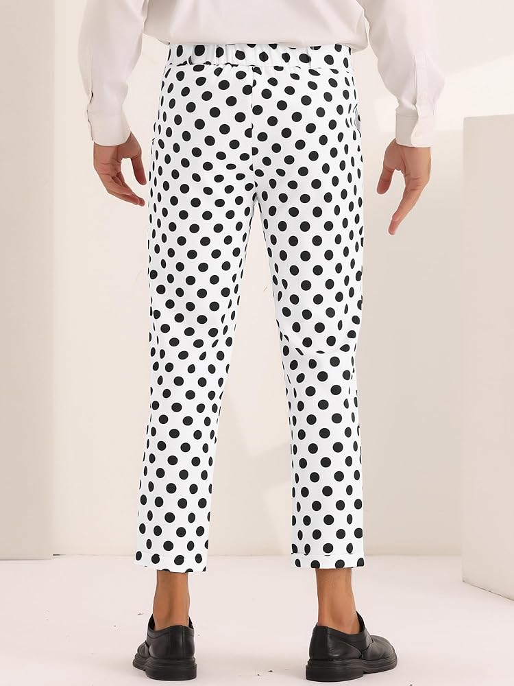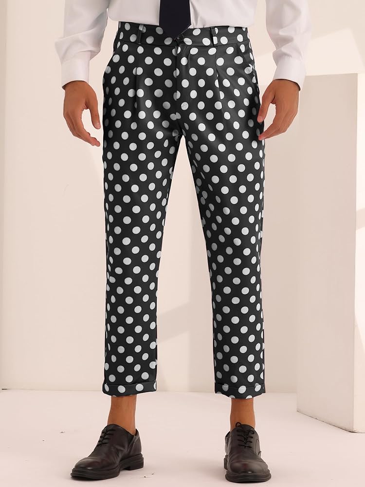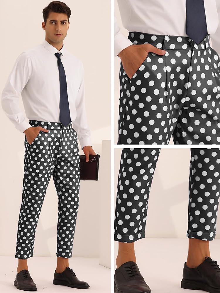 - 【CLASSIC DESIGN】Polka dots printed, zipper closure, flat front, formal office cropped dress pants.