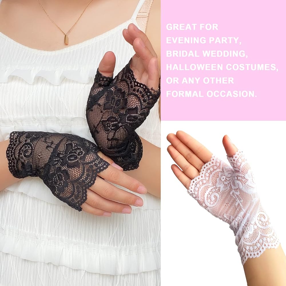 Packing Includes 2 pairs black lace fingerless gloves, which are enough for you to meet your daily wear and replacement needs.