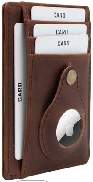 Leather Wallet and Holder for AirTag Wallet Slim Card Holder - Minimalist Wallet for Men and Women