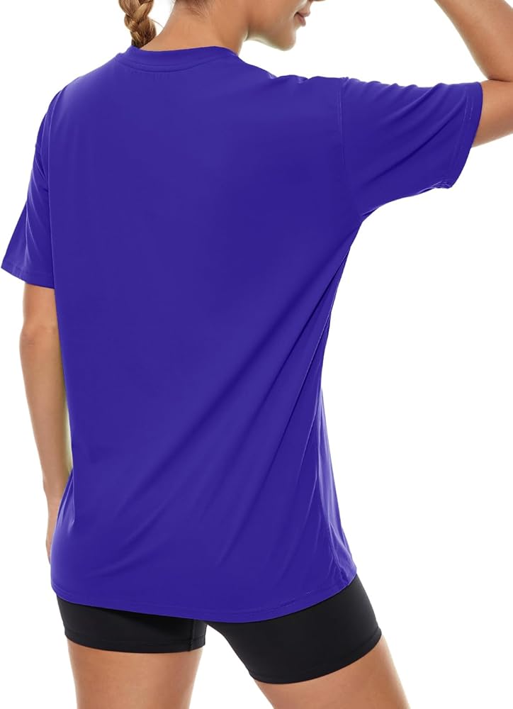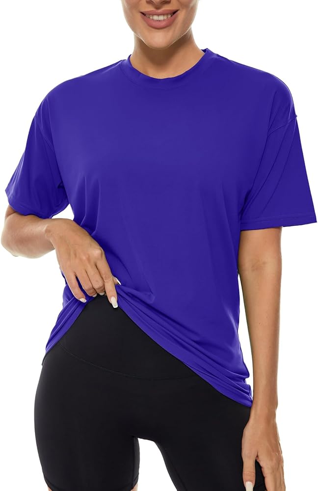 Ukaste Oversized Workout T-Shirt for Women - Crewneck Short-Sleeve Yoga Athletic Tee Top