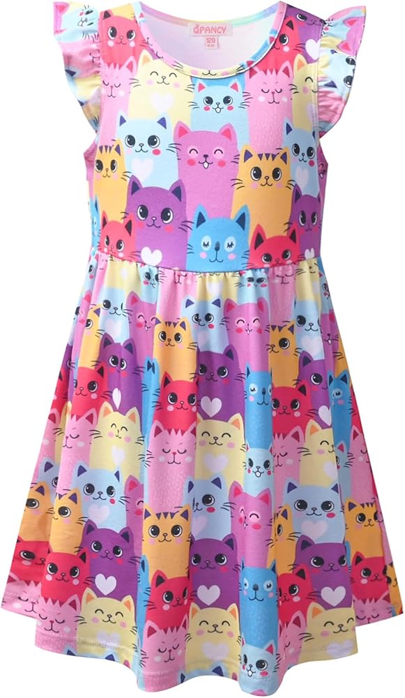 Girls Unicorn Dresses Summer Flutter Sleeve Rainbow Party Clothes for Kids