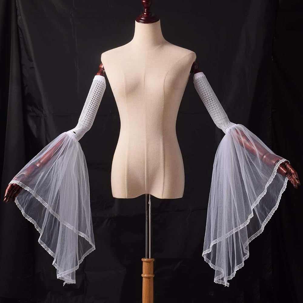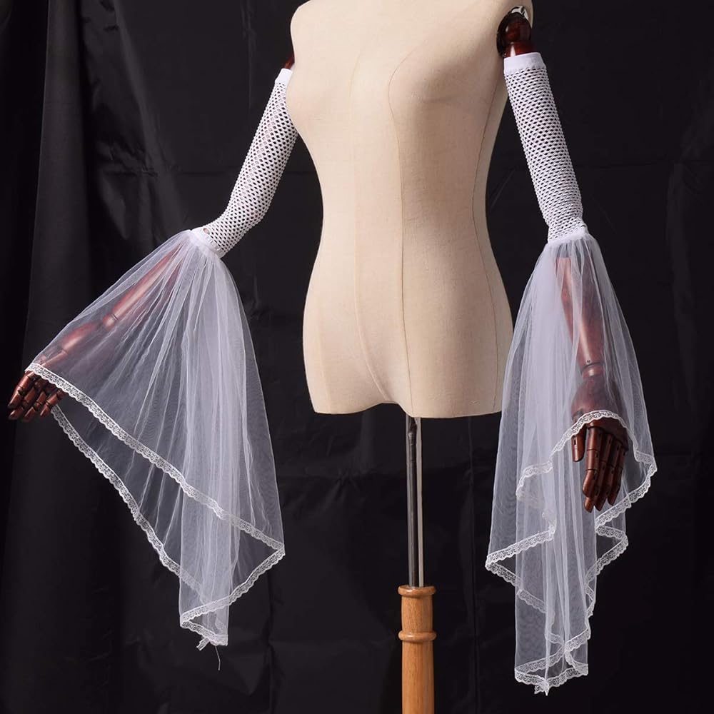 - Women Gothic Tulle Mesh Cuffs Bracelets For Wedding Party Arm Covers For Brides Fingerless Gloves 1 Pair