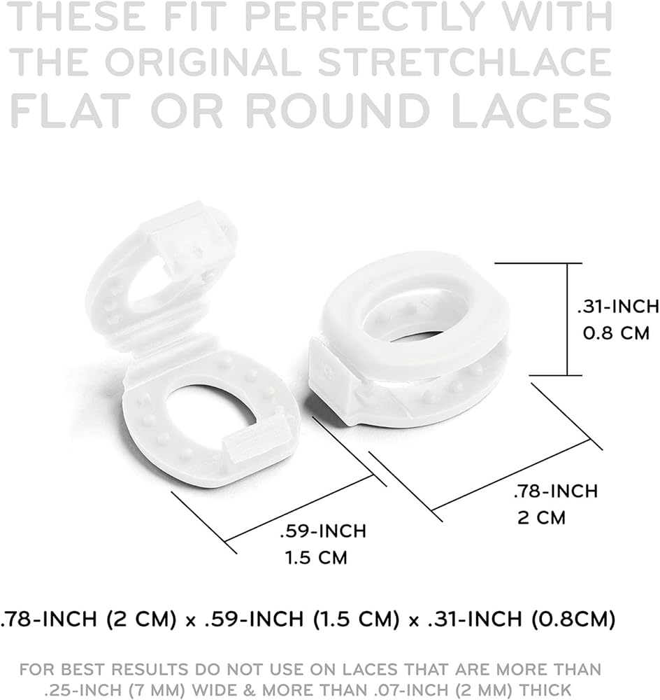 SIMPLE & EASY TO USE - Fastening your shoelace clips is as easy as 1, 2, 3! Open the clips and slide them under your tied shoelaces. Make sure the clips are centered over the knot and close until you feel a click. *Our shoelace clips are designed for conventional shoelaces, they may not function properly on laces that are too thin or too thick.