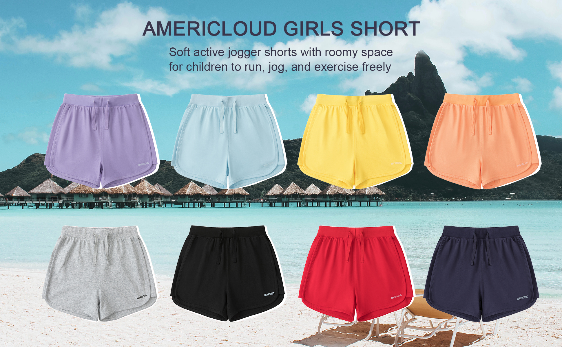 AMERICLOUD Girls Running Cotton Shorts Kids Drawstring Casual Short with Pockets Girls Workout Clothes 3-12 Years (Yellow-S)
