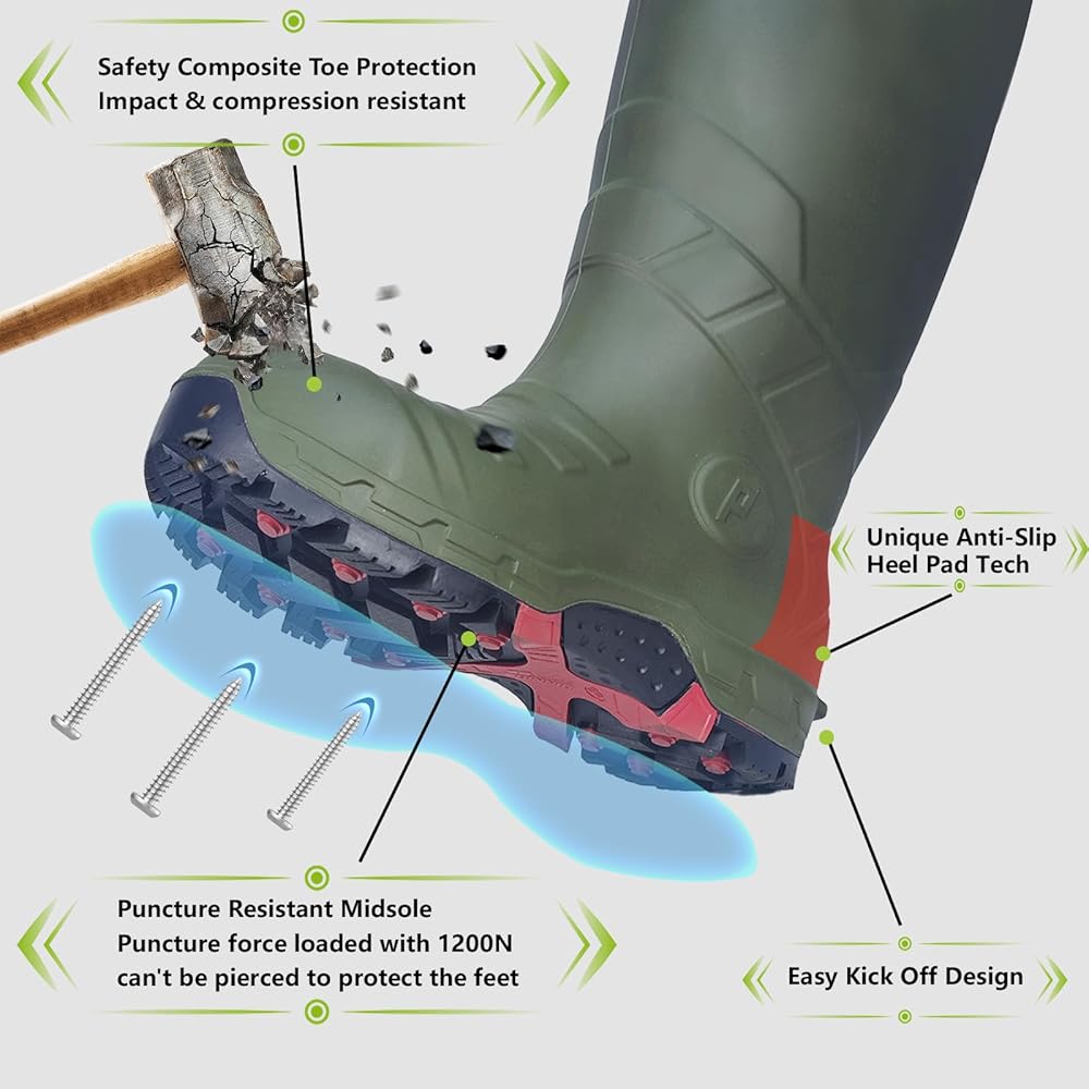 Anti-puncture: Puncture-proof midsole fabric in compliance with CSA-Z195, can not be pierced when the puncture force is loaded at 1200N.
