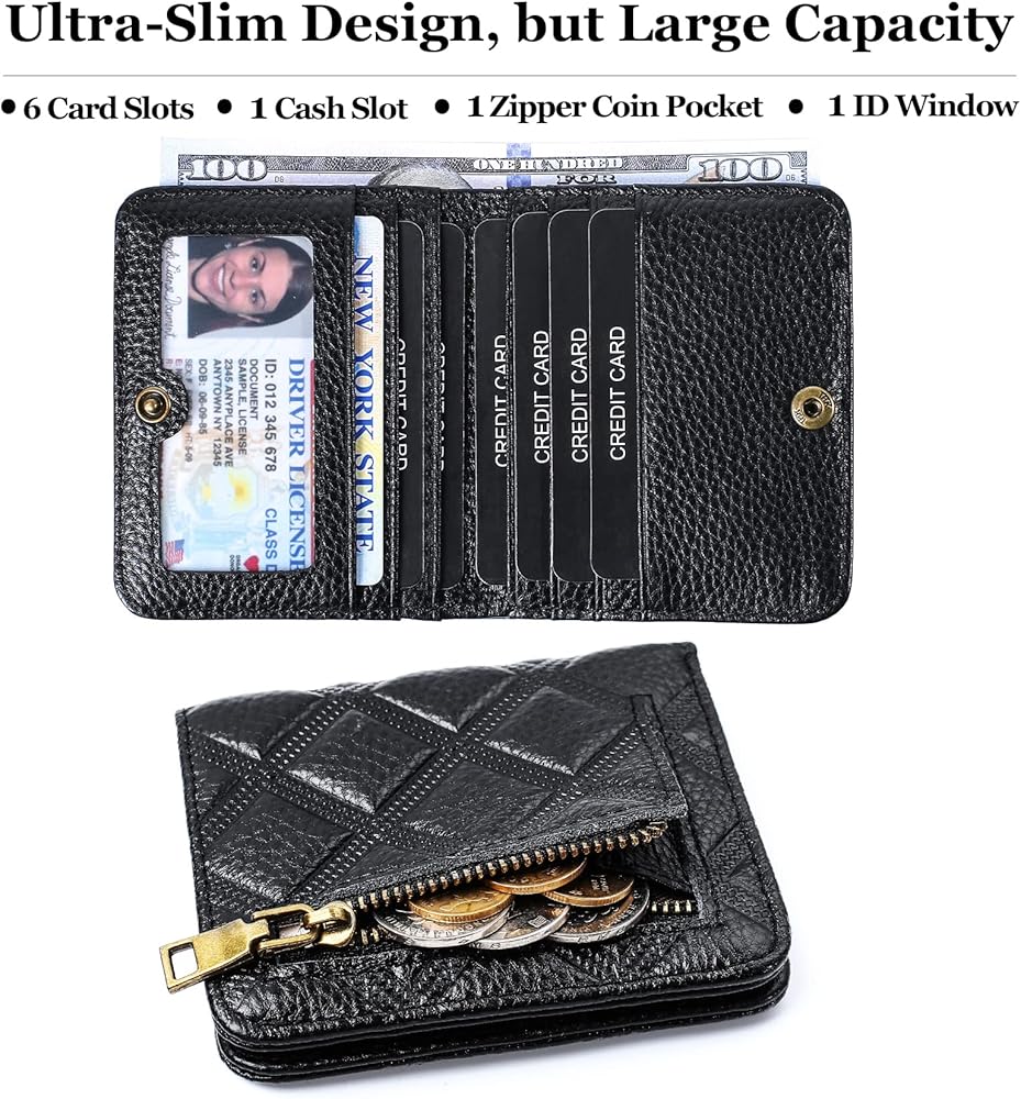 Large Capacity: This womens wallet small comes with 6 credit card slots, 1 full-length cash slot, 1 zippered coin pocket and 1 ID window. Plenty of storage in this ladies wallet holds up your daily essentials easily without being bulky