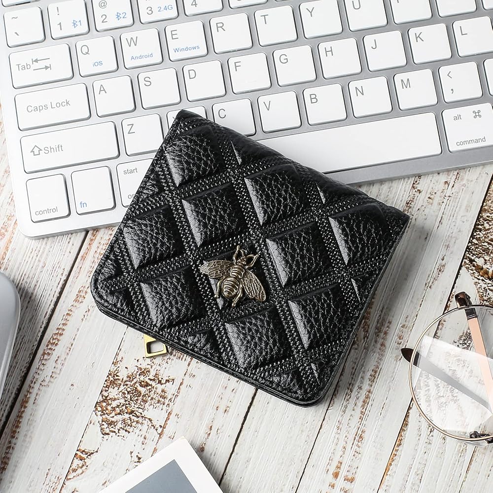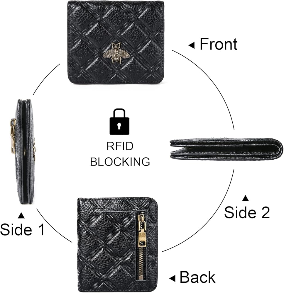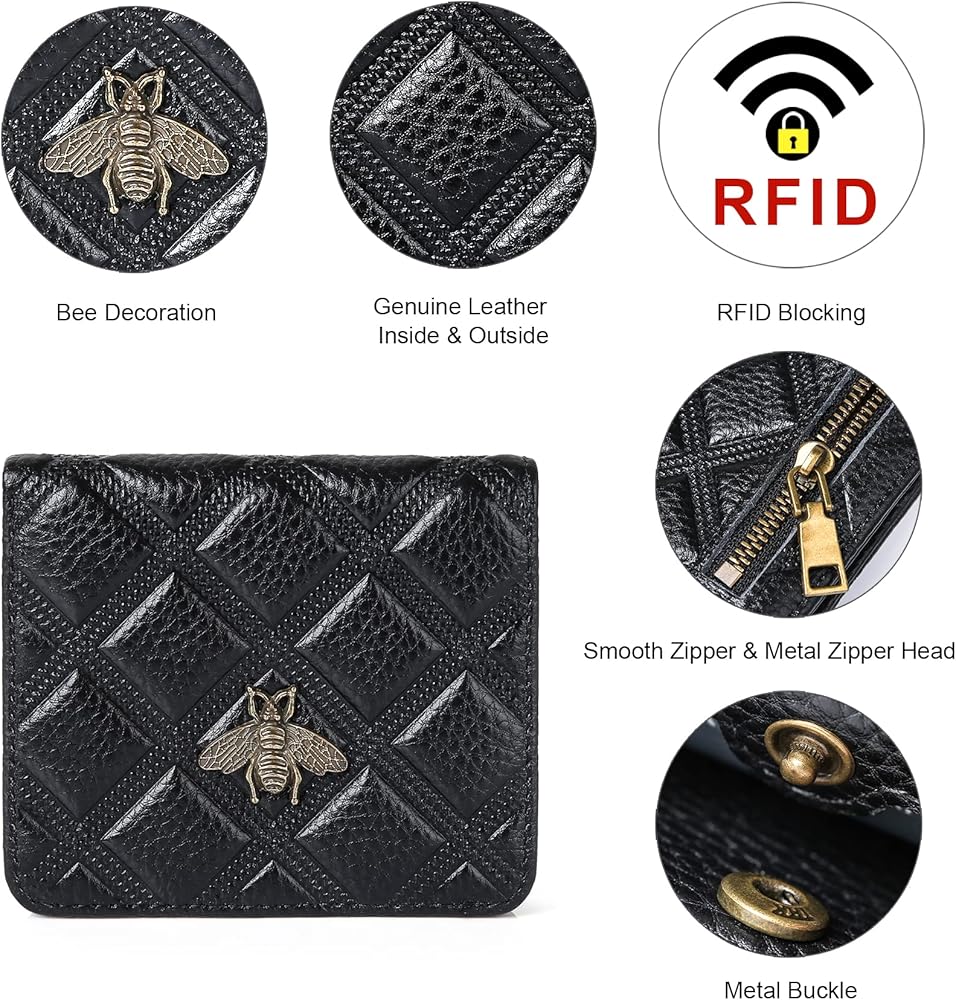 Genuine Leather Bee Wallet: This small wallet for women is made of top quality genuine leather inside and outside. Good stitching, neat seam, high quality hardwares plus fine workmanship to ensure its longevity. The cute bee decoration will make you more attractive and show your fashion