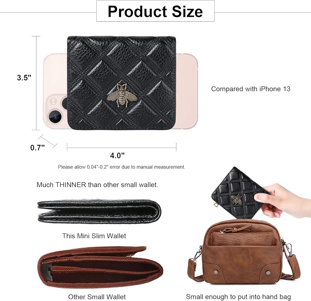 Compact Size: Our small womens wallet is compact, convenient and practical. The dimension of this slim wallet for women is 4.0"* 3.5"* 0.7", which is quite handy and easy to carry. You can put it in your pockets, jacket with pockets, handbag or crossbody bag