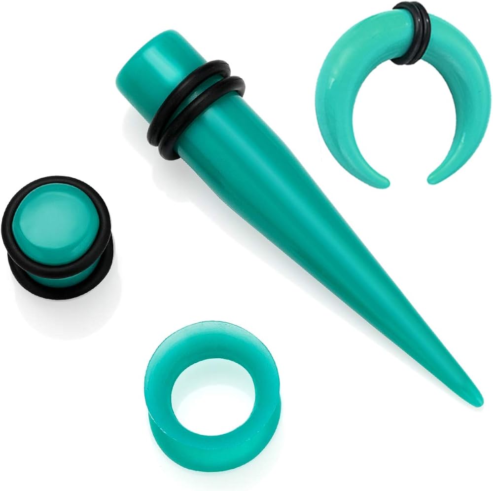 • Acrylic Plugs and Tapers (1 Pair of Each Size)- 14G = 1.6mm, 12G = 2mm, 10G = 2.5mm, 8G = 3mm, 6G = 4mm, 4G = 5mm, 2G = 6mm, 0G = 8mm, 00G = 10mm.