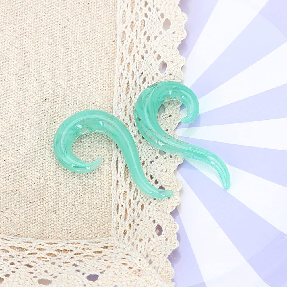 Material: Unique glass spiral tapers for ear piercing! Smooth Surface, Easy to Clean and Maintain. The material makes them easier to slide in when you change them out.