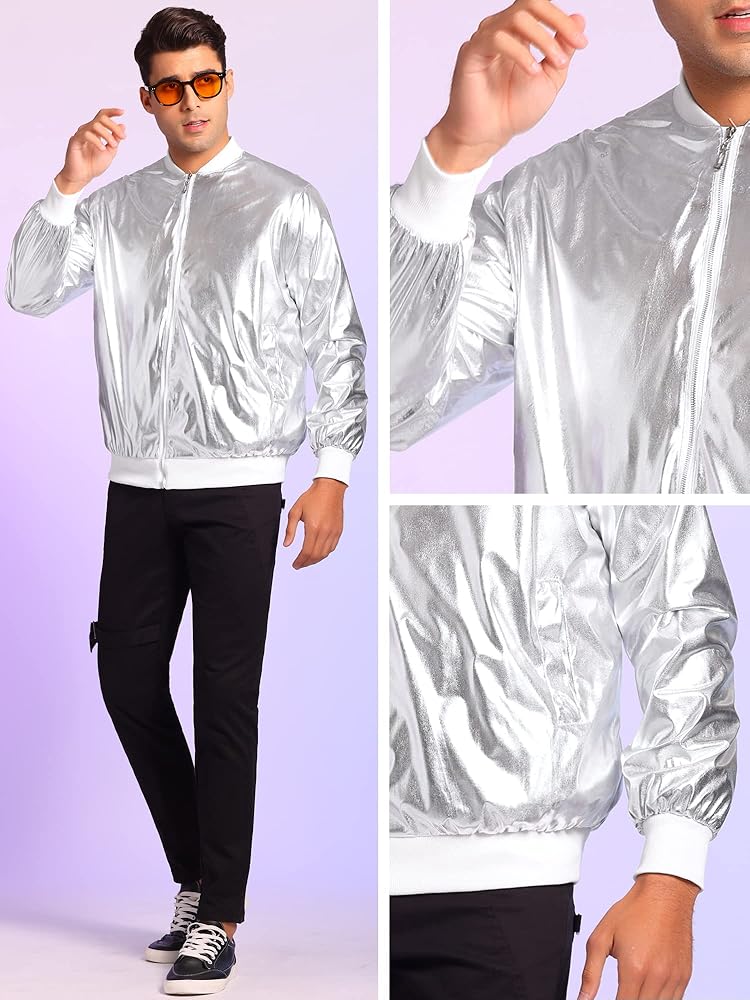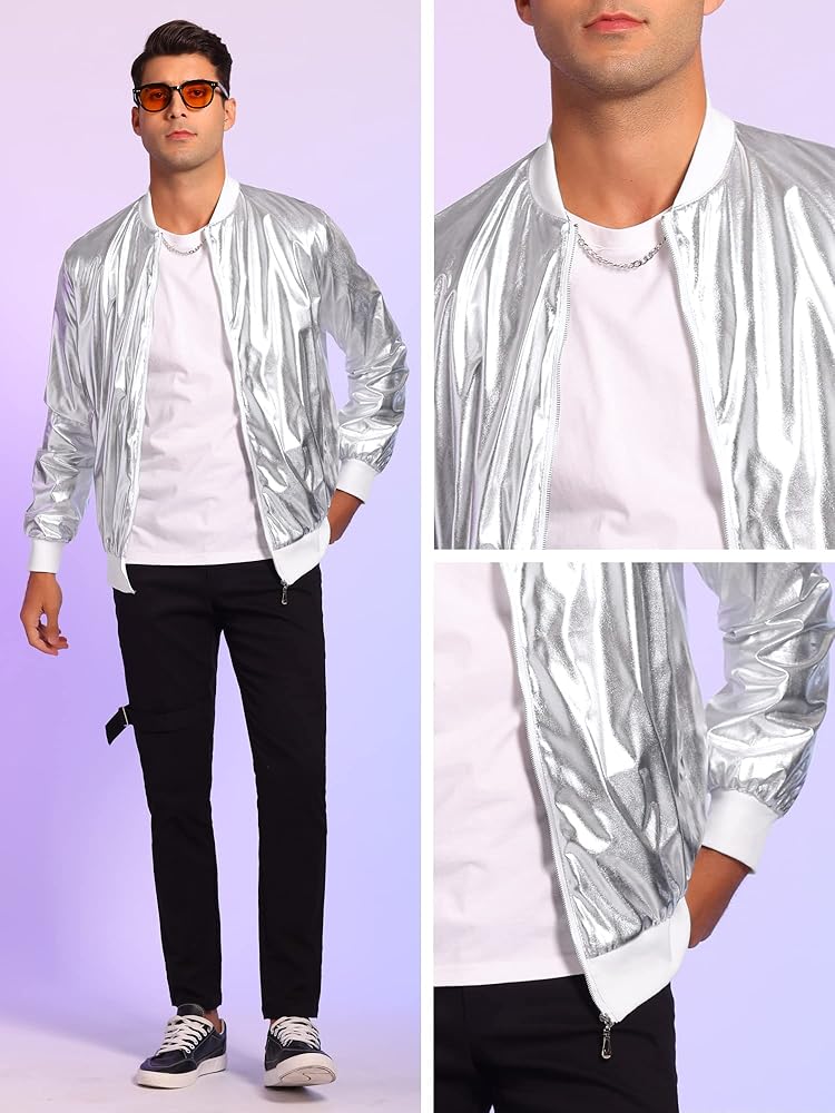 Lars Amadeus Shiny Varsity Jacket for Men's Lightweight Metallic Zip Up Baseball Bomber Jacket