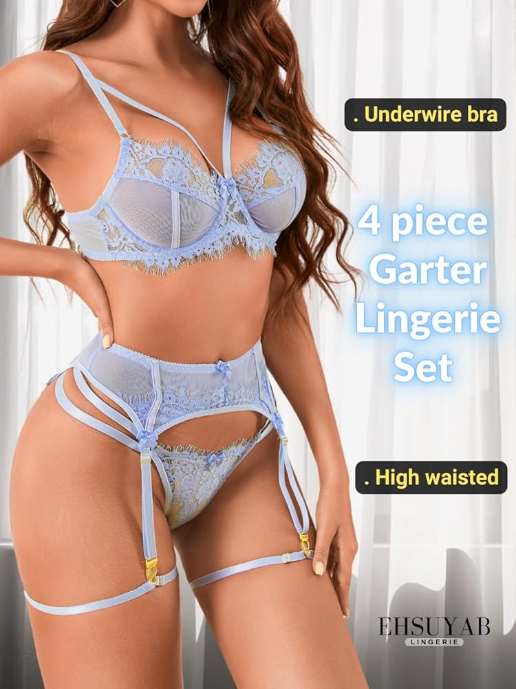A: It comes with 1 bra,1 pair of thigh straps, 1 panty and 1 garter belt .