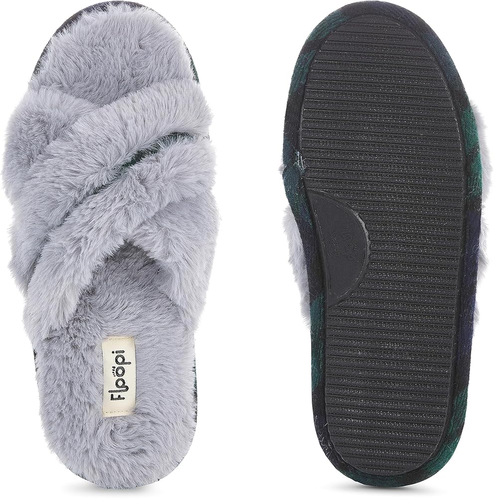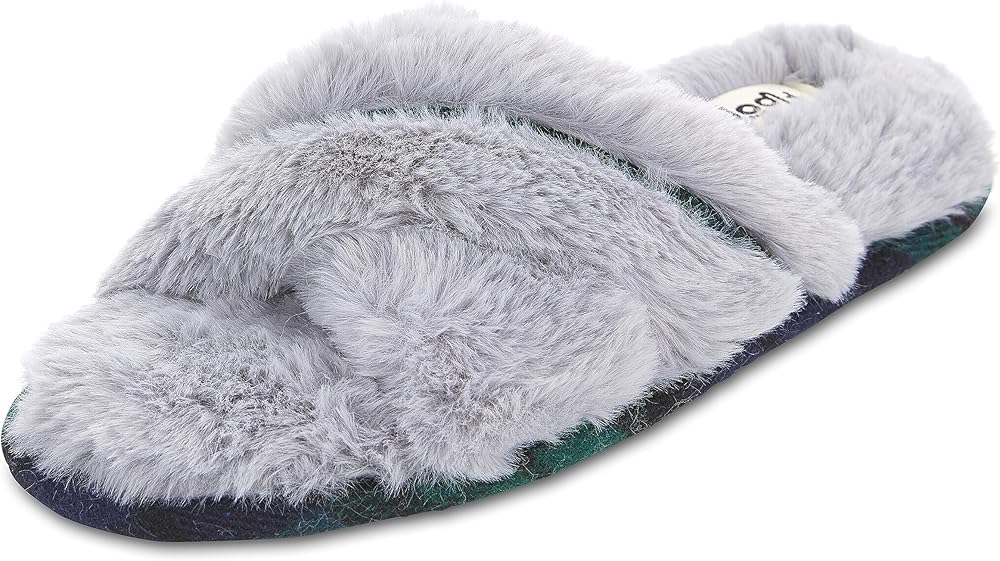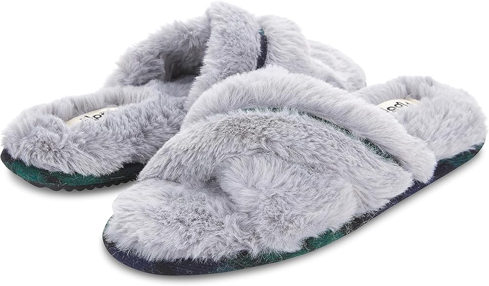 Floopi House Slippers for Women, Cross Band Fuzzy Womens Slippers Cozy Memory Foam with Indoor & Outdoor Anti Skid Sole