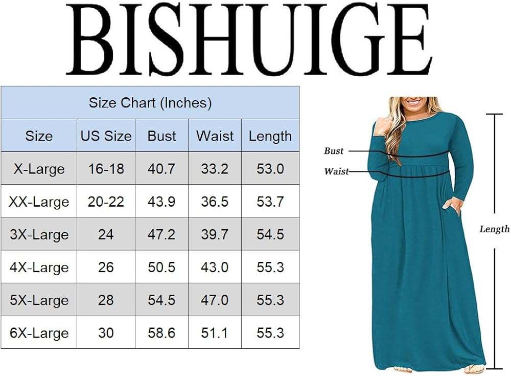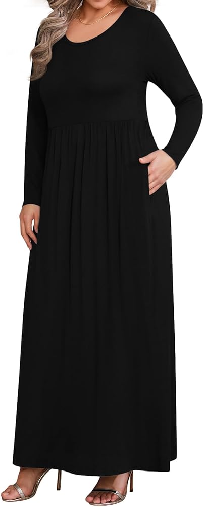 ❤ 【Features】 Stretch, fitted, Long Sleeve, Long Plus Size Dresses, Casual Style, Two Side Pockets, Round Neck, Floor Length, Elastic at Waist, Not lined, Plus Size Maxi Dresses.
