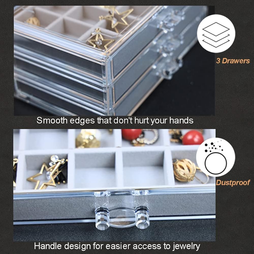 【Large Capacity】This acrylic earring storage box comes with 3 drawers total 45 compartments which can provide enough storage space for your jewelries.