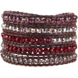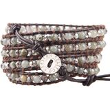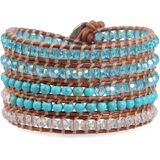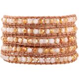 KELITCH Pearl Crystal Beads Bracelets Handmade Natural Leather 5 Wrap Bracelet for Women Classic Bangle Jewelry