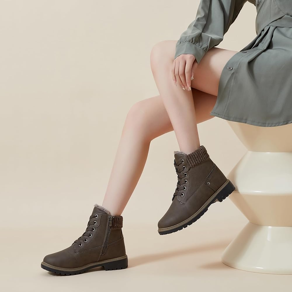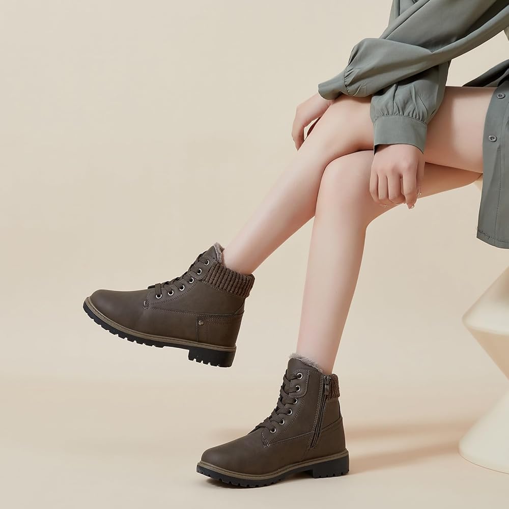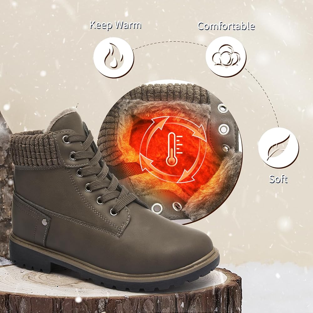 【Warm inside】:Womens ankle boots inside is a thick fur inside, warm and fluffy plush tightly wrapped around your feet, the Combat boots women give your feet a plush and comfortable experience.
