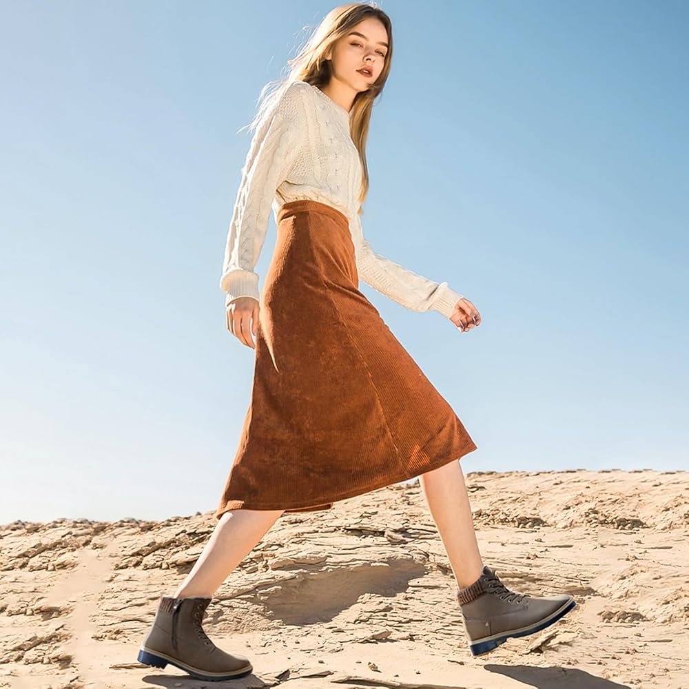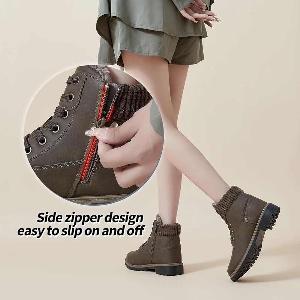【Easy to wear and take off】: Combat boots women use side zippers to put on and take off in winter, while the classic lace design helps you adjust the width of the instep.
