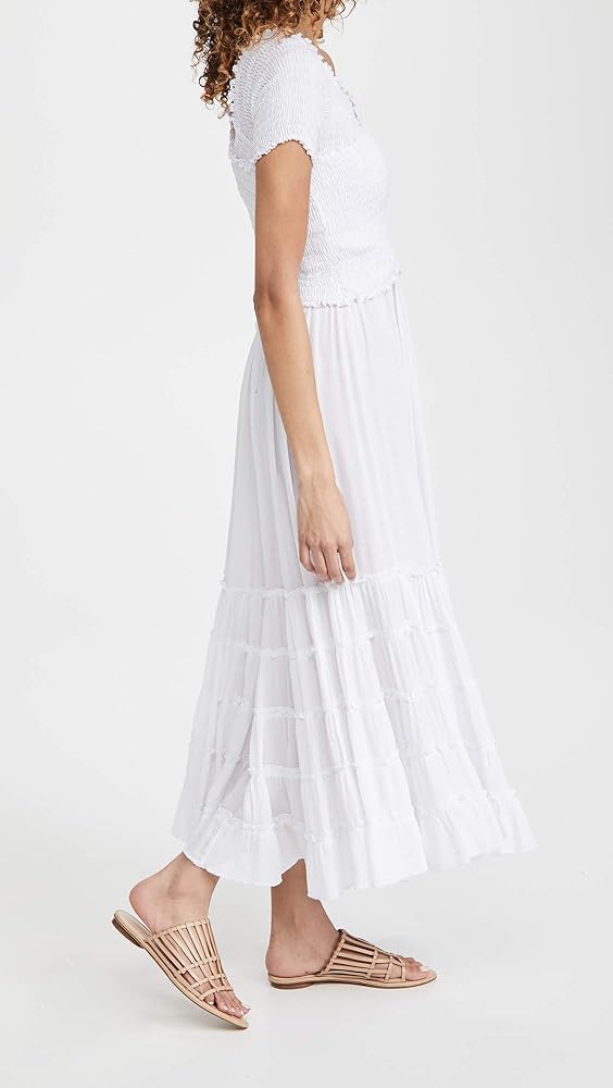 A sweet shoreside layer, this Poupette St Barth dress features a smocked bodice that gives way to a breezy ruffled skirt, while a crisscross neckline lends extra romance.