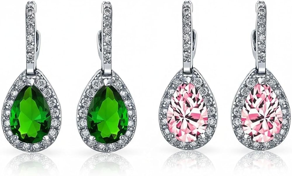 Formal Art Deco Estate Style Teardrop- CZ dangling clip on earring is prefect for prom, evening wear, cocktail, holiday, or bridal party gift. Comes in many simulated CZ birthstone month colors. For a ravishing glow in your formal look opt for this exquisite pendant necklace. Showcasing a stunning, simulated amethyst cz teardrop centerpiece with cz halo. Gorgeous for a February birthday. Features Adjustable screw clip on for comfort.