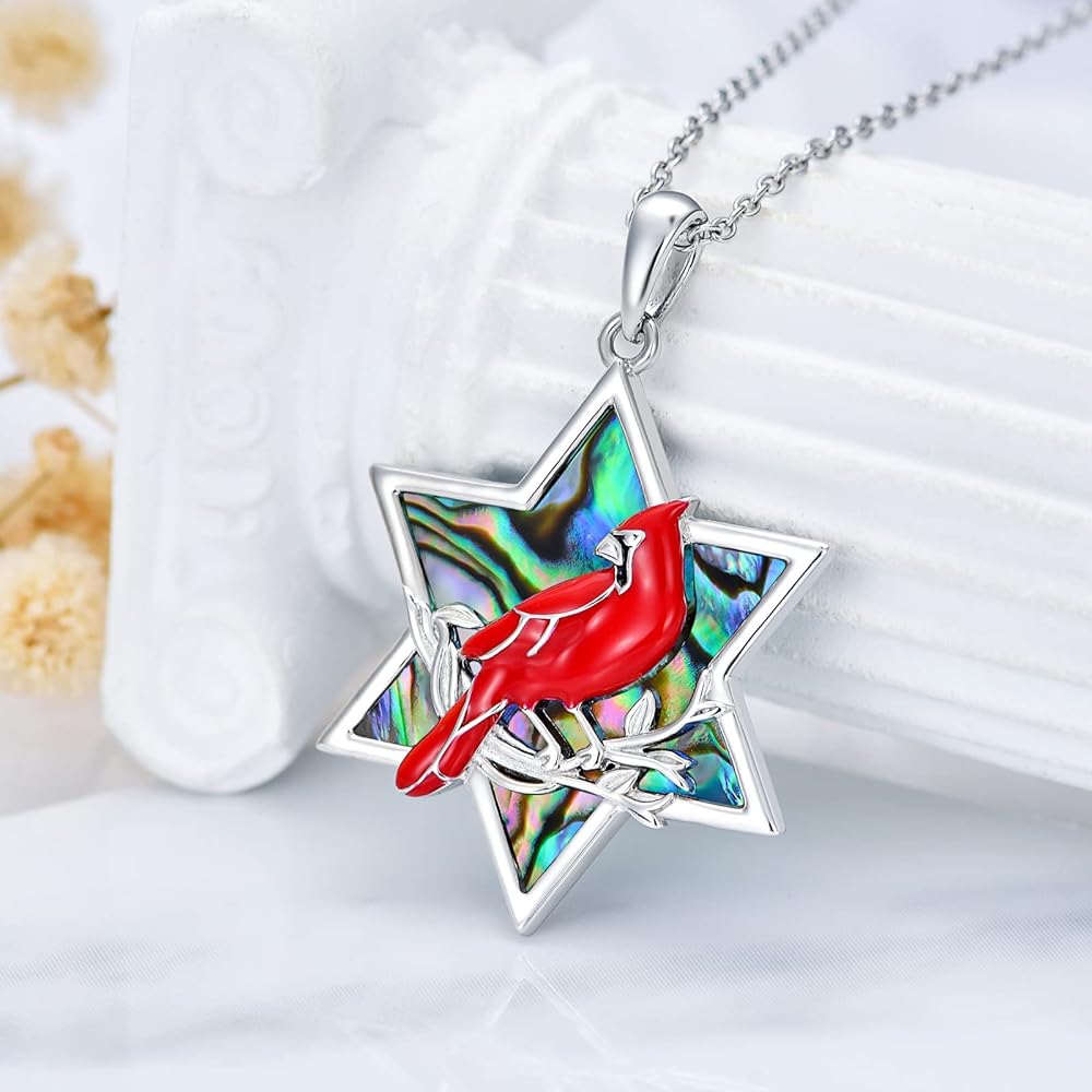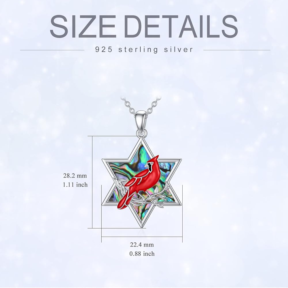 TOUPOP Red Cardinal Necklace Pendant s925 Sterling Silver Jewelry For Her Women Teens Girls Mother's Day gift
