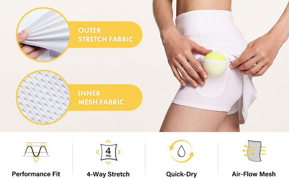 - [2-in-1 Design] Developed to provide more freedom with the skirt attached to Inner compression shorts for hassle-free coverage.