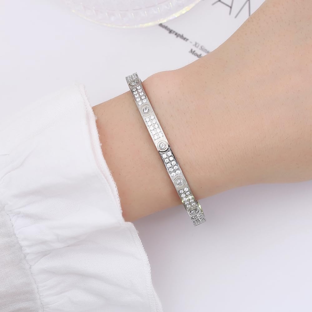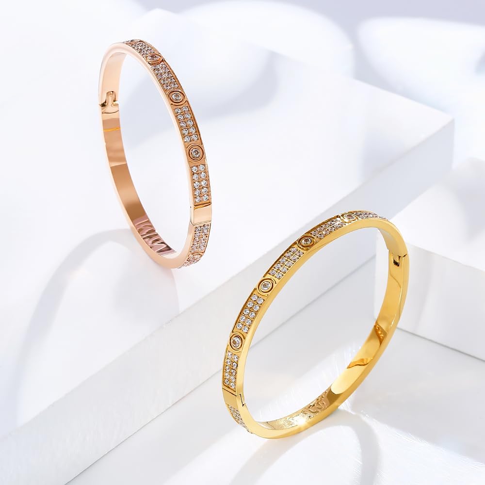 Material -- Love Bracelet is made of titanium steel and cubic zirconia, 18K gold, lead, and nickel free, hypoallergenic, it will not tarnish or lose its luster, easy to wear, comfortable and beautiful.