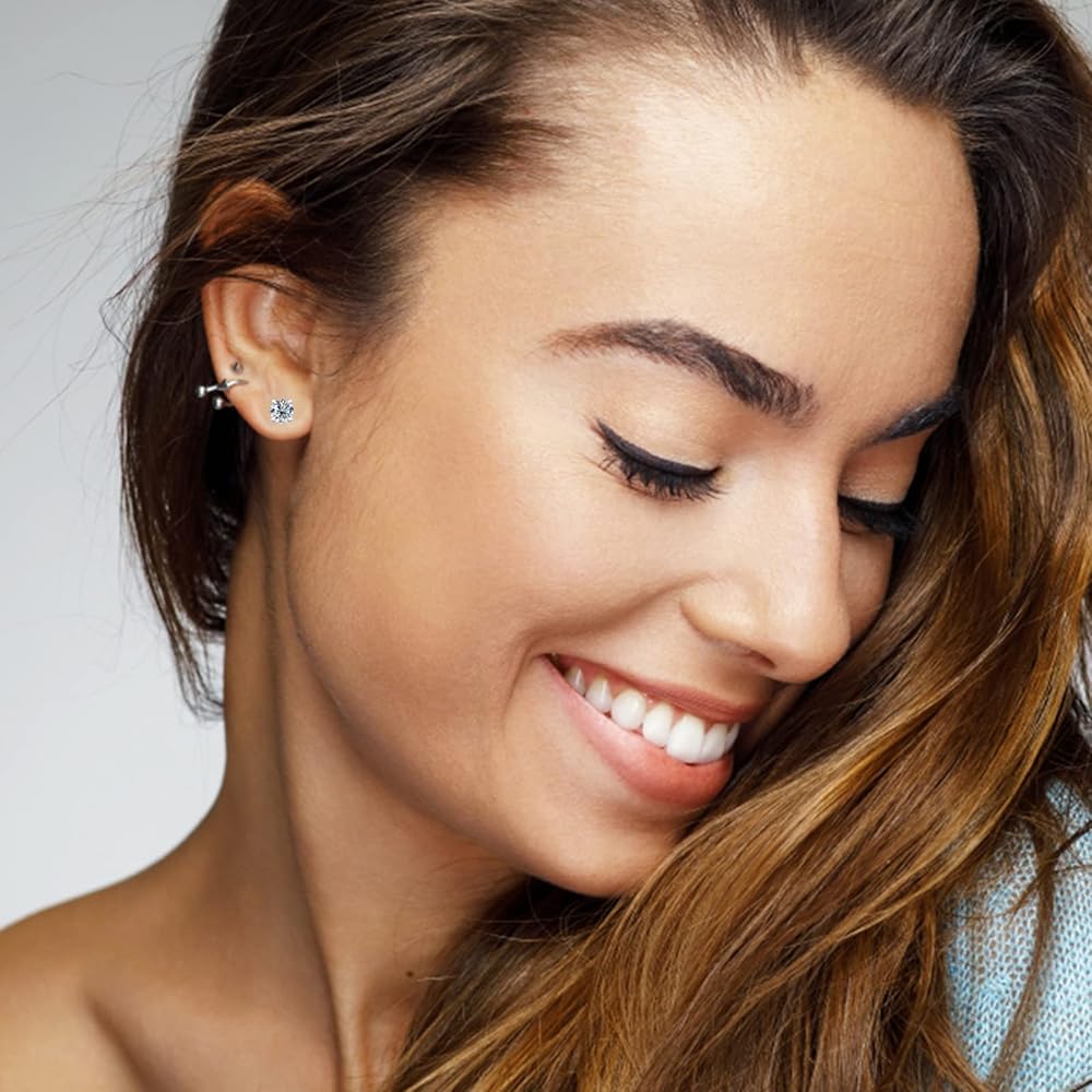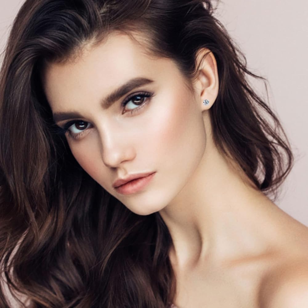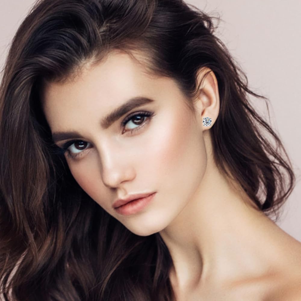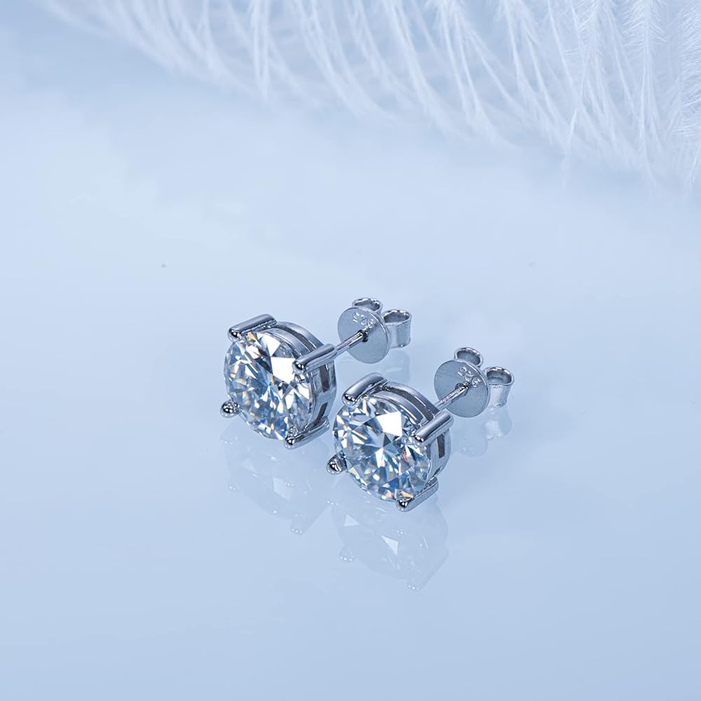 🎁Silver Stud Earrings:🎁 925 Sterling silver stud earrings are set up with four-claw solitaire brilliant moissanite. Round cut with excellent polish and symmetry, to maximize the brilliance of a traditional round moissanite diamond. The Sterling silver butterfly back design is very safe and comfortable, not loose or fall off, even if sleeping with wearing. Moissanite stud earring goes perfectly with every outfit and is suitable for every occasion.