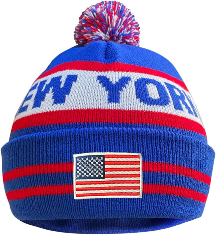 Dutern US Flag New York City Hockey Embroidery Classic Pom Cuff New York Beanie Hat Cuffed Winter Hat Knit Toque Skull Cap