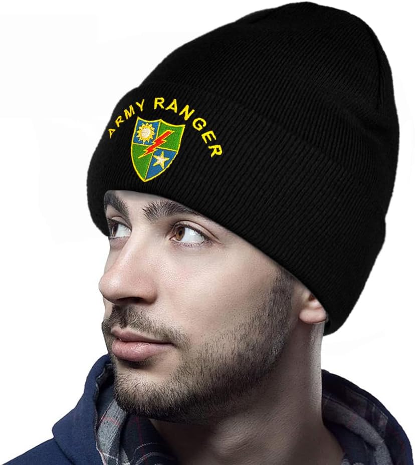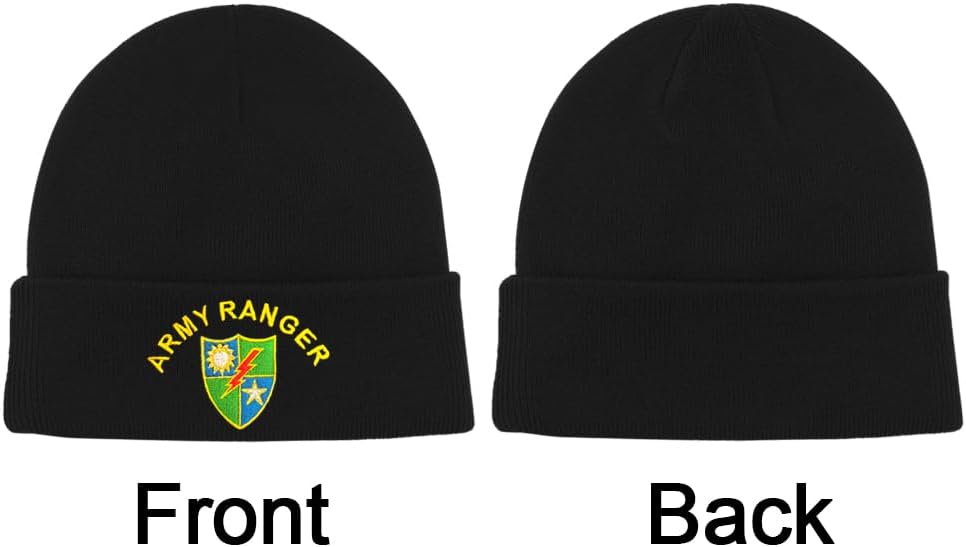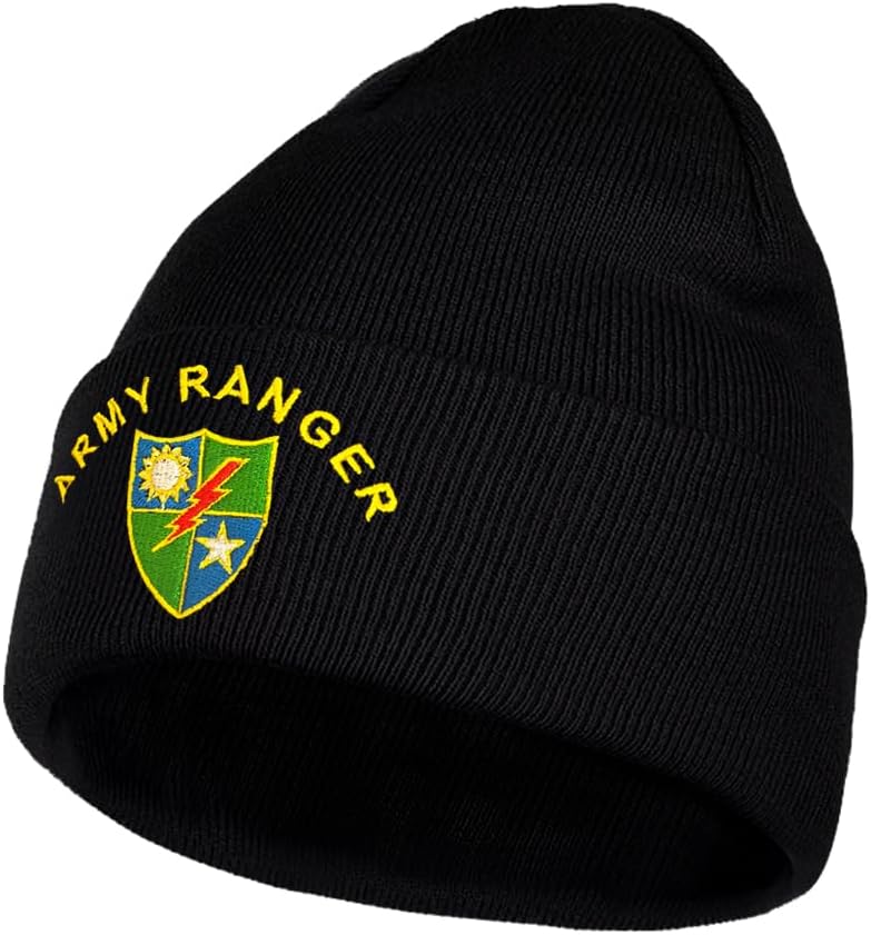 Dutern U.S. Army Ranger 75th Ranger Regiment Embroidery Classic Beanie Hat Cuffed Winter Hat Knit Toque Skull Cap Black