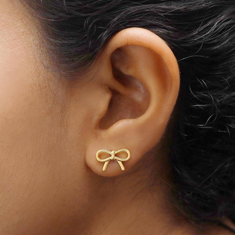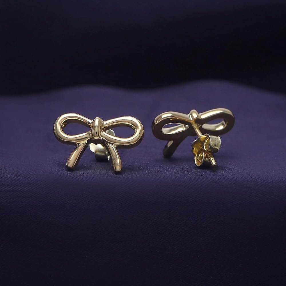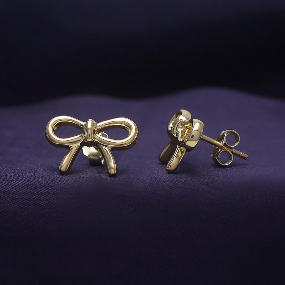 Adds A Touch Of Nature-Inspired Beauty To Your Look Bow Stud Earrings In 14K Gold Over Sterling Silver Makes a Standout Addition to Your Collection