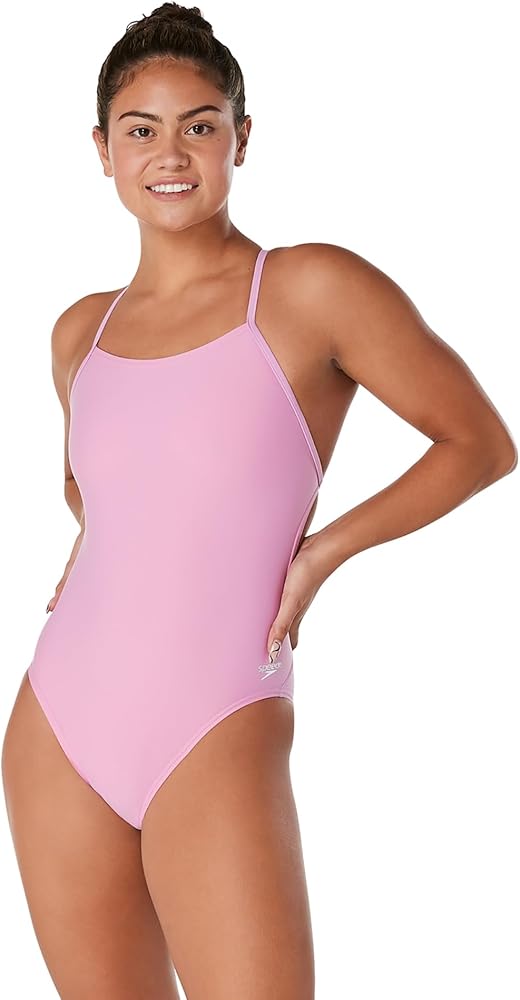 Good vibes. Make a colorful splash in this swimsuit, featuring a bright paneled design and a cheeky fit. This one-piece style is made from Speedo Eco Endurance fabric that offers durability and UV 50+ sun protection. It has a fixed strap and cutout back ideal for greater range of motion.