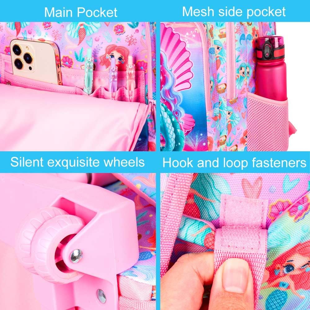 【Upgrade material】- We use high-quality durable materials to make the rolling backpack for girls set, giving the surface of backpack a water resisteant function that can protect your items from water damage.