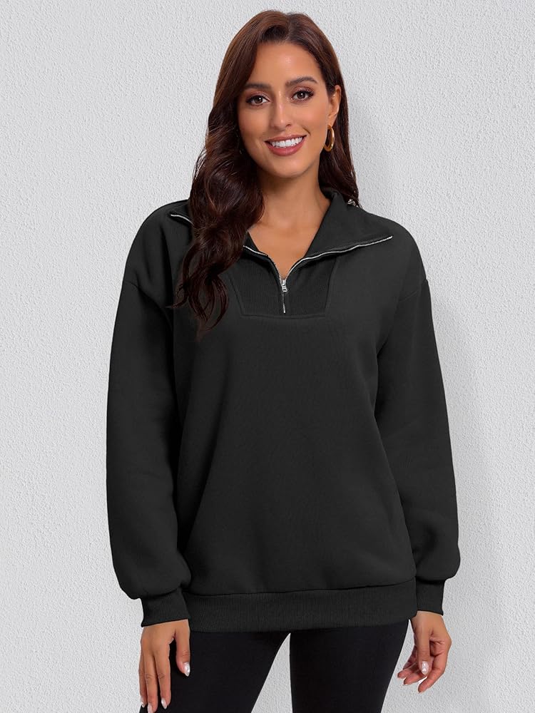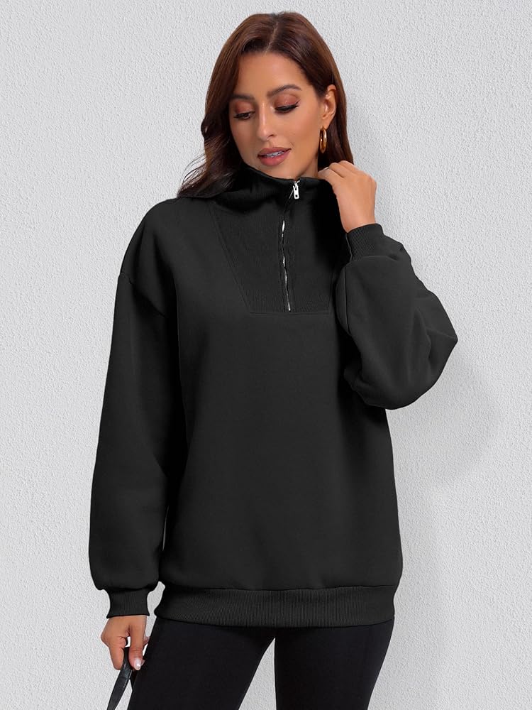 DESIGN: Half zip up sweatshirts, oversized hoodie, quarter zipper pullover, drop shoulder, ribbed stand collar, ribbed cuff, long balloon sleeve fall outfits for women, 2023 fall fashion tops, soft winter clothes, aesthetic clothing, teen girls y2k clothes.