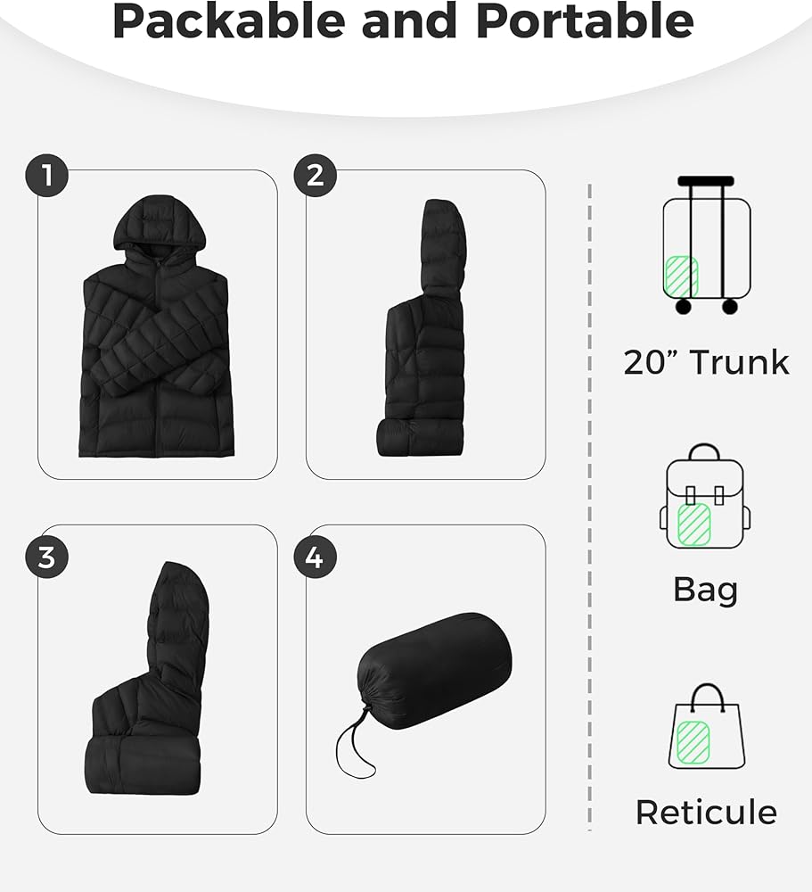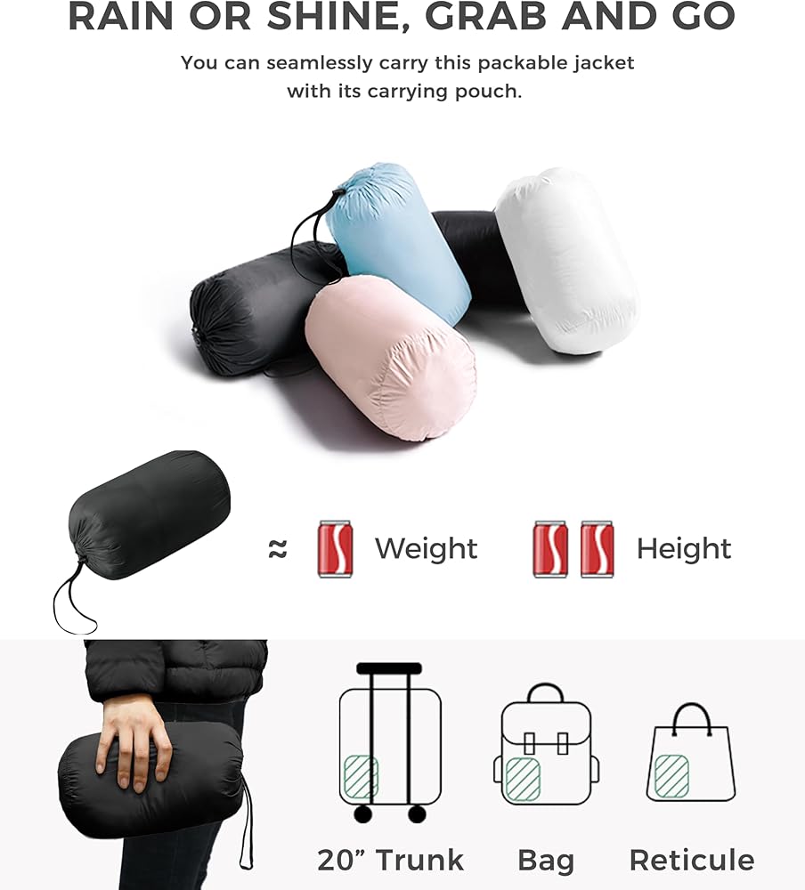 Lightweight and Comfortable - With its unique contoured fit and elastic-bound closure, this puffer coat for women guarantees a comfortable and flexible wearing experience. Additionally, its compact size and lightweight nature make it easy to carry, allowing you to enjoy comfort anytime, anywhere.
