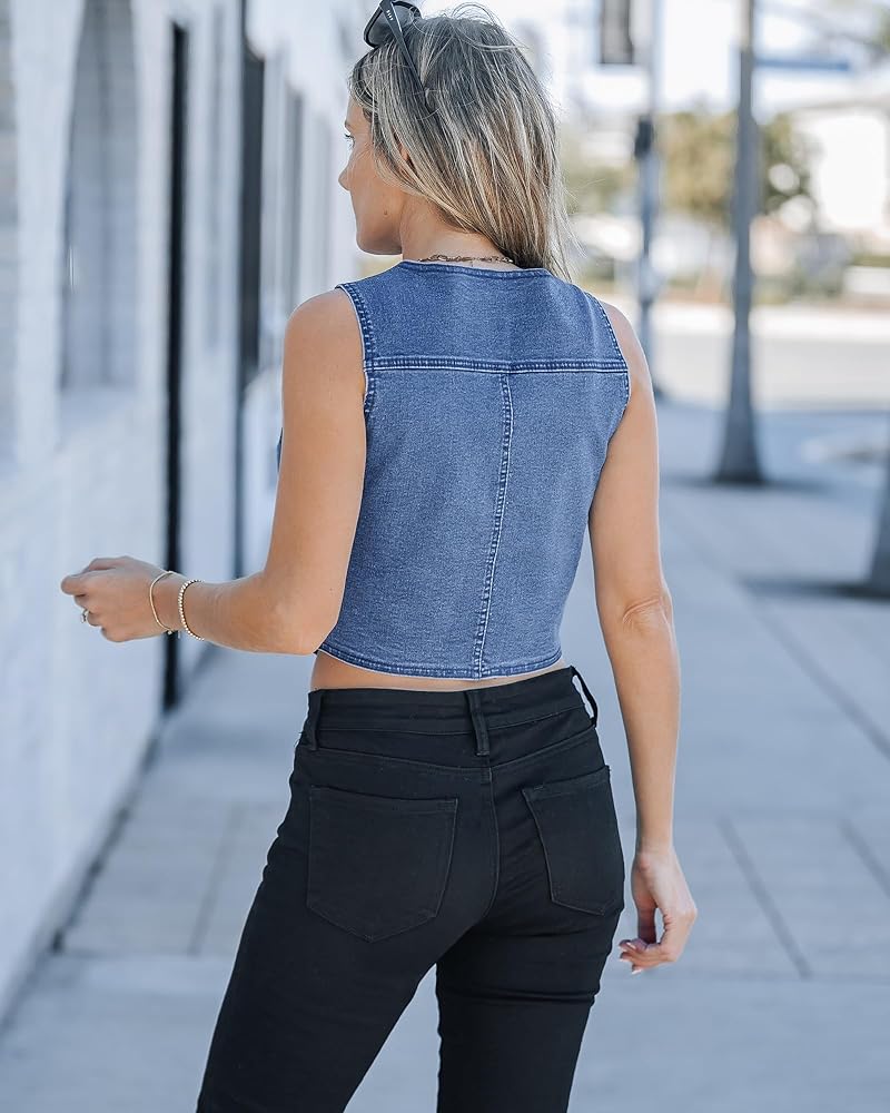 The v neckline of the jean vest for women adds a touch of femininity to your look. Add a necklace to secure the glam as you wear these jean vest top for women.