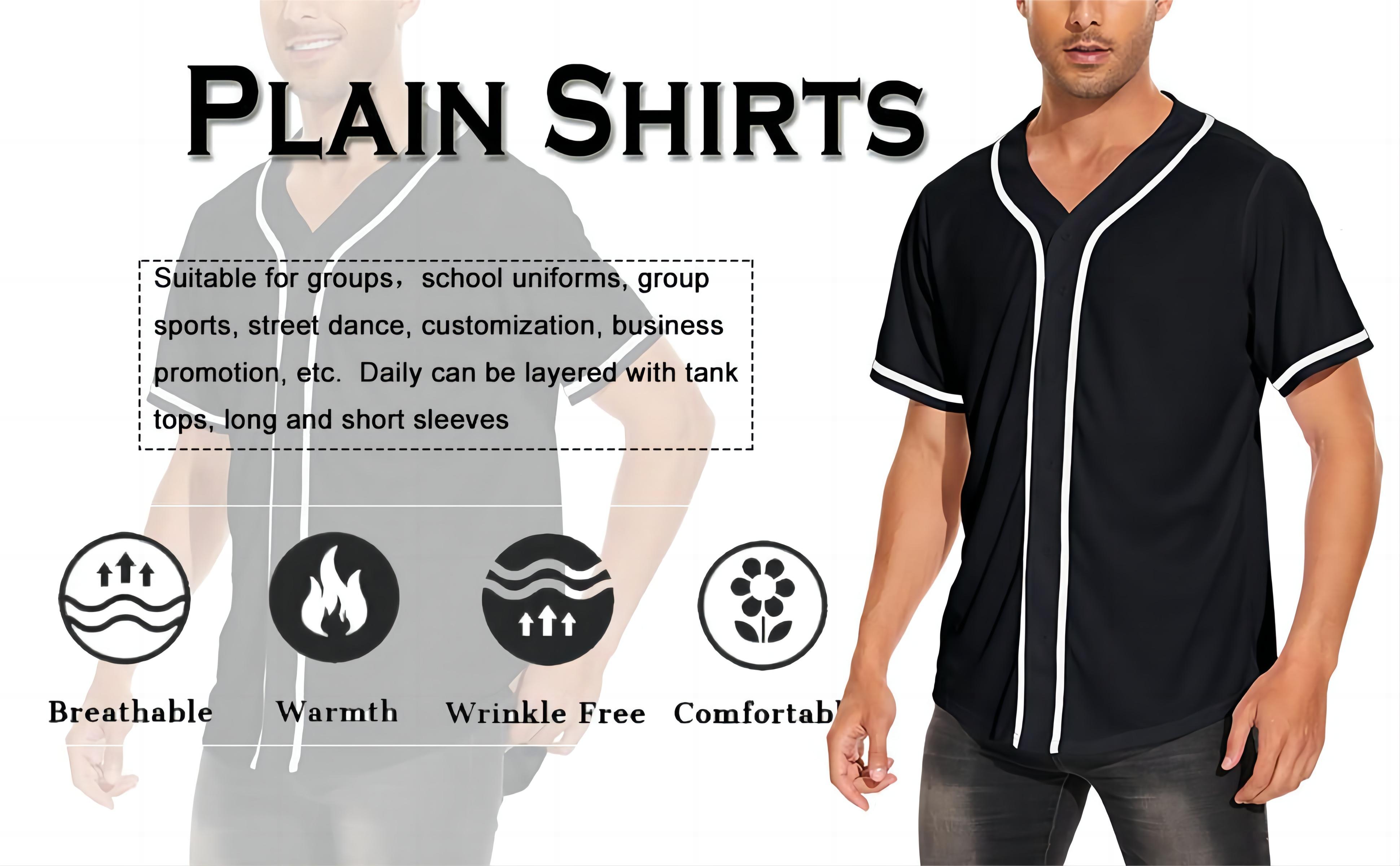 ♠Occasion:Baseball Button Jerseys are great for school uniforms, parties, hip hop shows, baseball teams, basketball teams, dance teams, etc.Active Wear for All Sports.