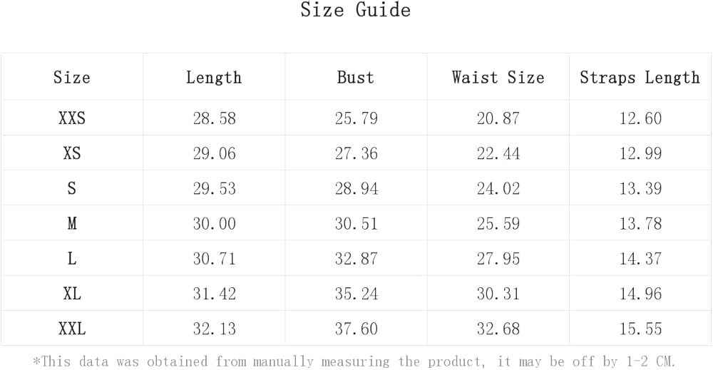 Small: Bust: 28.9", Length: 29.5", Waist Size: 24.0"