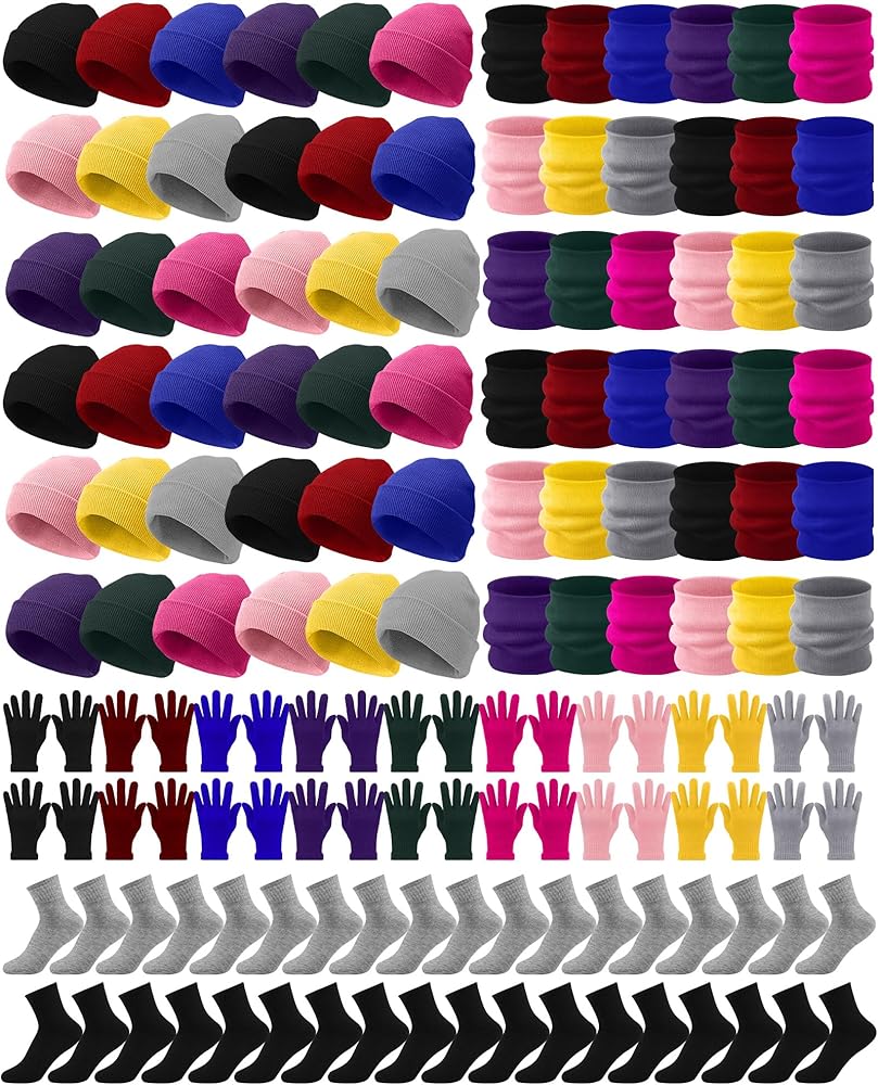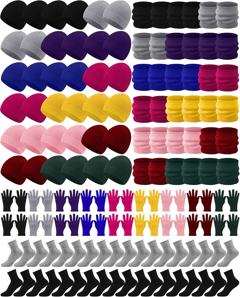• Ample Quantity: you will receive 1 winter warmth pack that includes 36 pairs of unisex gloves for adults, 36 pieces of beanies, 36 pieces of neck warmers and 40 pairs of socks; These winter hats and gloves are unisex, fit most people, making it a warm set for sharing, donation, charity, school, event or gifting